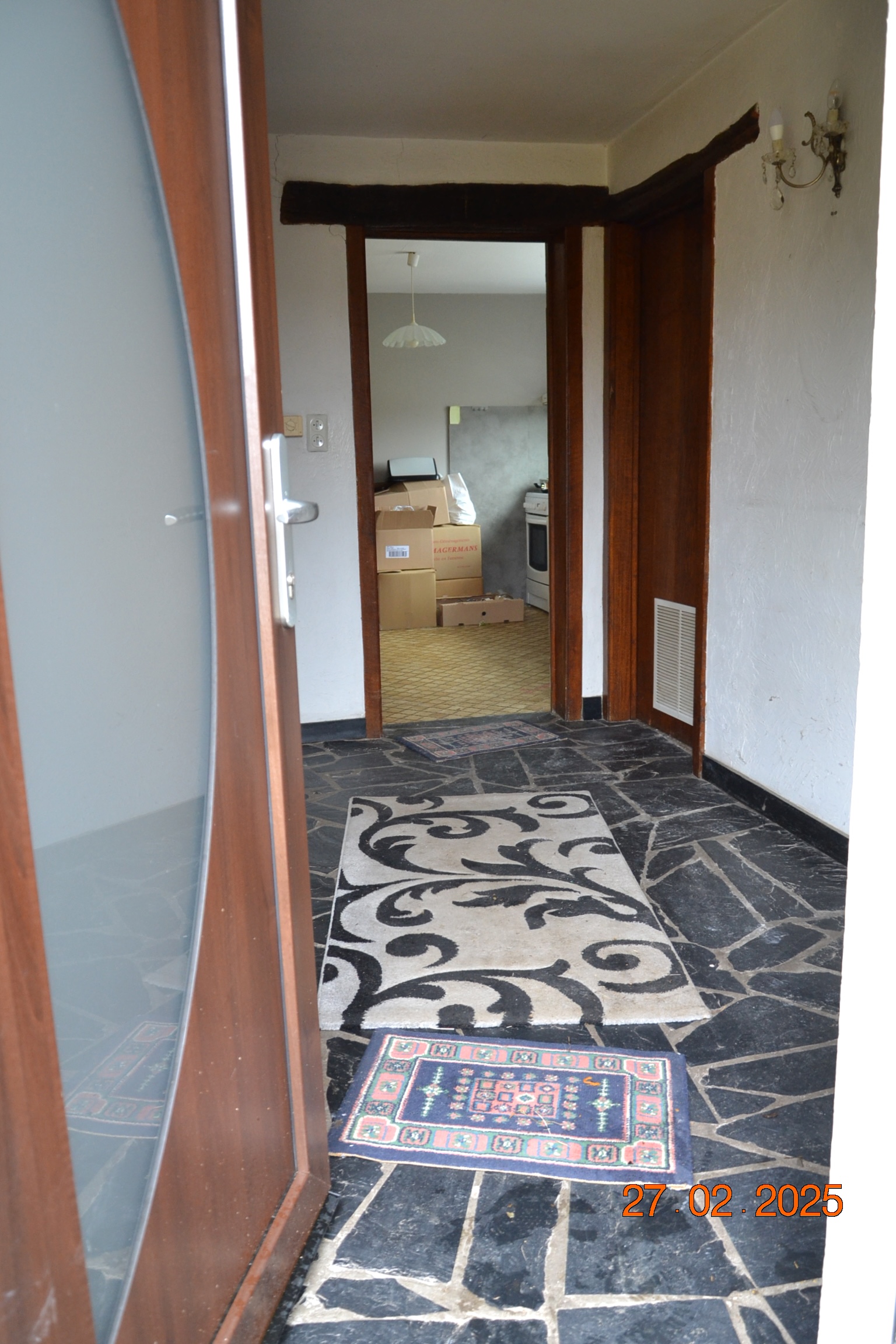 * Châssis de fenêtre en bois simple vitrage SAUF dans la cuisine (nouveau châssis de fenêtre en PVC double vitrage), nouvelle porte d’entrée PVC.